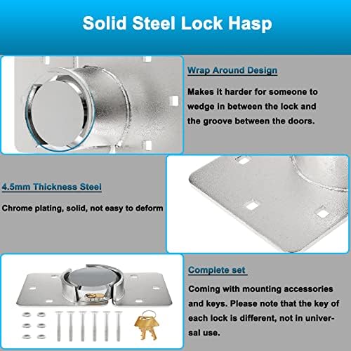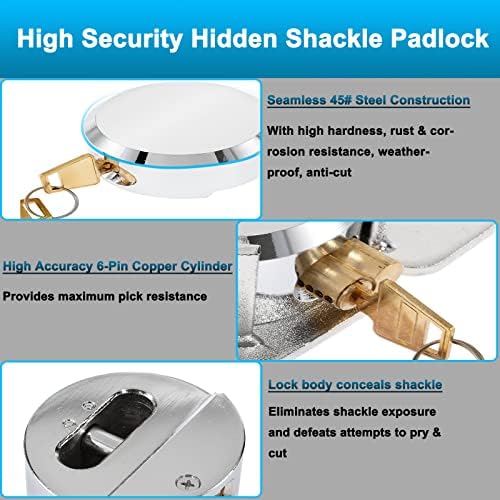 【Full Hidden Shackle Padlock Set】This hockey puck lock 2 pack contains 2 units of hockey puck lock and hasp, 4pcs keys and 12pcs M8 × 80mm screws. All you want are within the bundle. Please be aware that these padlock units are keyed totally different, which signifies that the important thing of every lock is totally different, not in common use.
