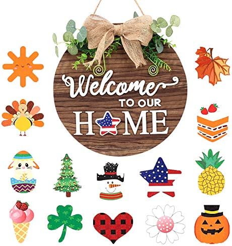JINRS Interchangeable Welcome Signal for Entrance Door – Vacation Residence Decor Signal with Changeable Icons – Rustic Wood Door Hangers for Each Season – Farmhouse Entrance Porch Decor