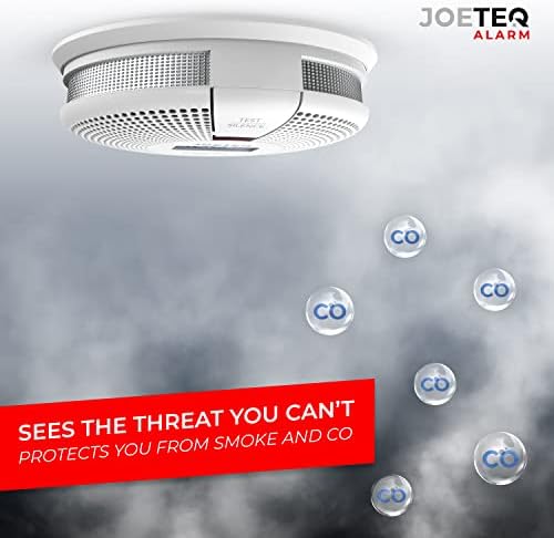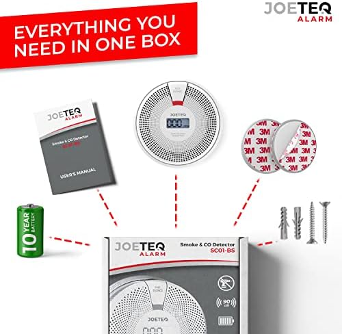 JOETEQ 2-in-1 Smoke and Carbon Monoxide Detector 10 12 months Battery Operated Included – No Drilling Straightforward Adhesive Set up, SC01-BS, 1pcs