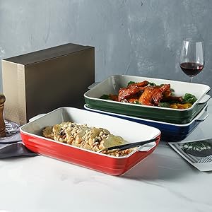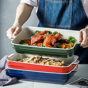 EASY TO CLEAN AND STORE: Clean glaze defend this casserole dish in opposition to stains, making it straightforward to scrub. This ceramic baking dish may be stacked and won’t take up an excessive amount of area in your kitchen.