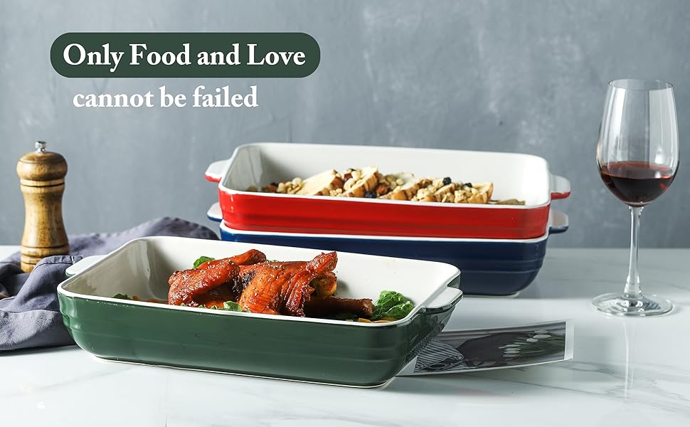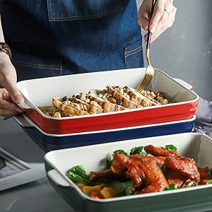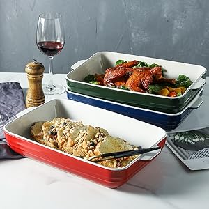 SAFE FOR DISHWASHER AND OVEN: This ceramic bakeware can be utilized within the microwave or oven as much as 500°F, and secure for dishwasher and freezer. The particular deal with design performs a job of warmth insulation safety.