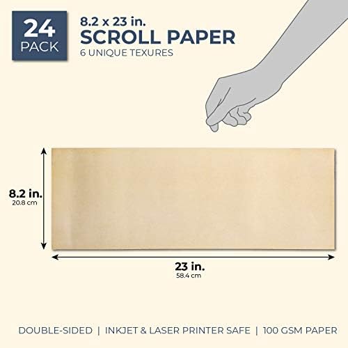 Contains 24 sheets of vintage design textured paper in 6 assorted double sided designs. Inkjet and laser printer protected. Best for letters, poetry, drawing, calligraphy follow and extra. Dimensions: 8.2 x 23 inches.