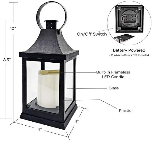 CHIC, UNIQUE AND DECORATIVE – Black plastic and glass window with a white LED candle inside that glints contained in the lantern. A Constructed-in LED candle is included. Every lantern takes 3 AAA batteries. Batteries are usually not included.