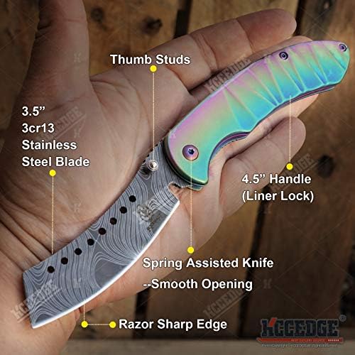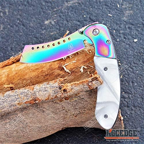 KCCEDGE BEST CUTLERY SOURCE EDC Pocket Knife Tenting Equipment Folding Knife for Tenting Gear Survival Package Full Edge with Razor Sharp Edge 58731 (White Iridescent)