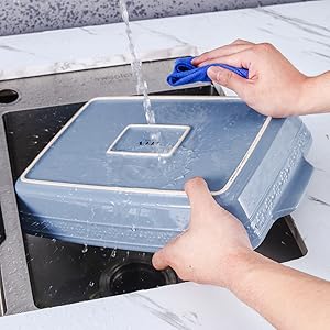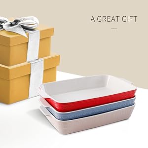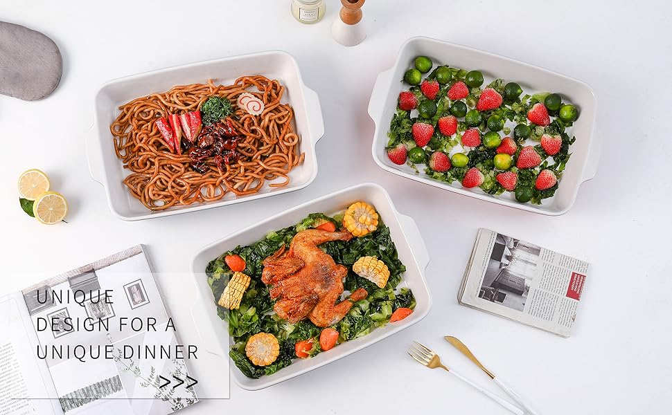 Nonstick and clean glaze resists sticking or flaking, simple to wash with dishwasher or hand wash with cleaning soap and water. NOTE: Please do not put the recent baking dish into the chilly water instantly to keep away from any accident.