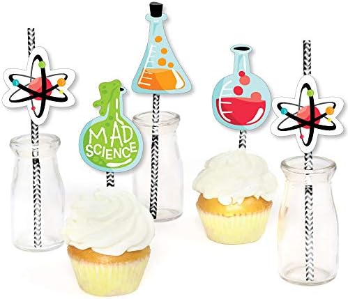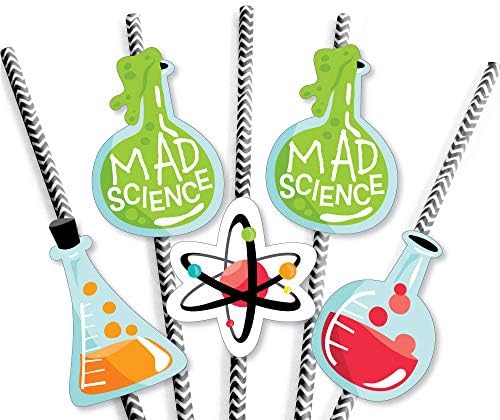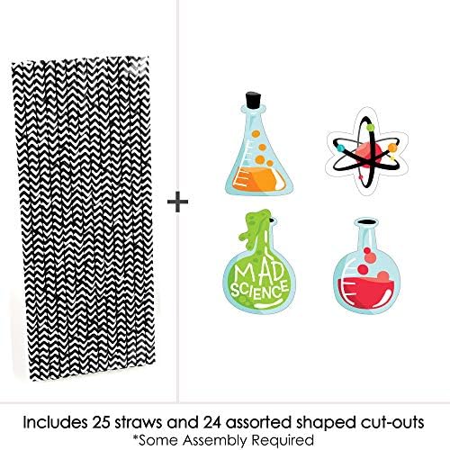 Large Dot of Happiness Scientist Lab – Paper Straw Decor – Mad Science Child Bathe or Birthday Occasion Striped Ornamental Straws – Set of 24
