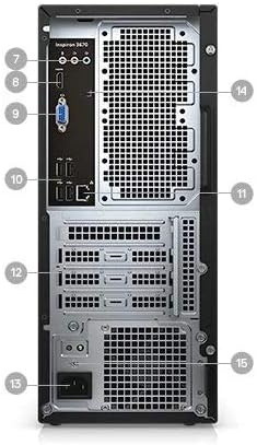1. Energy button | 2. 5-in-1 Multi-Card Reader | 3. Audio combo jack | 4. (2) USB 3.1 Gen 1 Sort-A | 5. Optical drive | 6. Air vent | 7. Line in out and mic | 8. HDMI | 9. VGA | 10. (4) USB 2.0 ports | 11. Ethernet port | 12. Growth card slots | 13. Energy provide unit | 14. Safety-cable slots | 15. Padlock rings