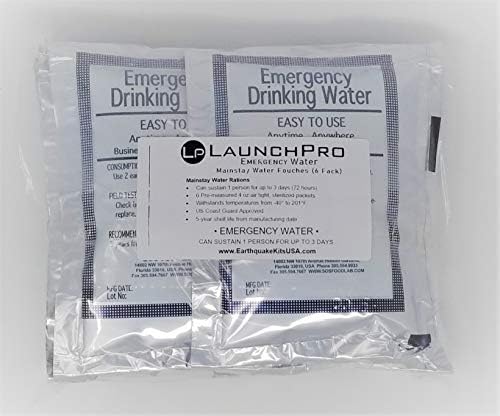 LaunchPro Emergency Water Pack 3 Day Survival Rations (6 x 4.2 oz Pouches) USCG Accredited 5 -Yr Shelf Life
