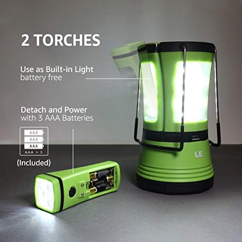 LE LED Tenting Lantern Rechargeable, 600LM, Removable Flashlight, Good Lantern Flashlight for Hurricane Emergency, Mountaineering, Fishing and Extra, USB Cable and Automotive Charger Included