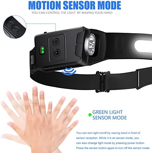 Hand-free Movement Sensor Management: LED headlamp is supplied with superior gesture movement sensor perform to activate/off headlamps by simply waving your hand inside 2 inch induction vary. While you activate the outside rechargeable headlamp, you possibly can press sensor button to activate sensor mode, indicator mild will flip to inexperienced