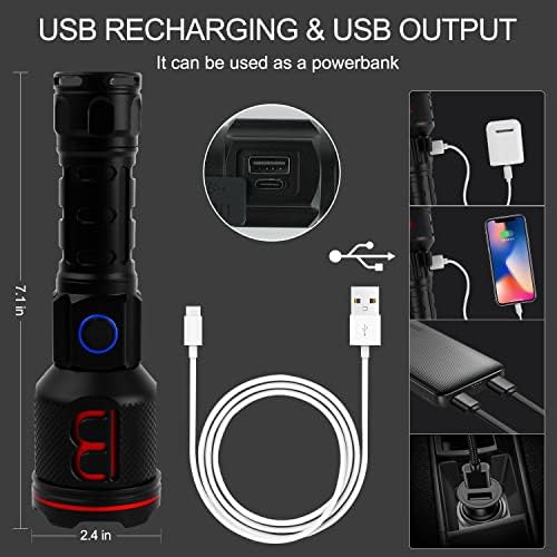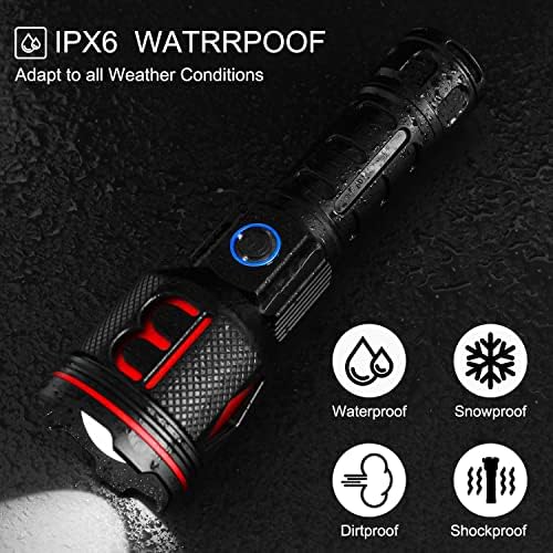 【Kind-C Rechargeable & Energy Show】Flashlight rechargeable is powered by 6000mAh battery. Geared up with USB cable and Kind-C quick charging port.The USB rechargeable flashlight helps a USB charging cable (accent) and the included giant capability devoted battery helps 15 hours of low-light mode use. Its cycle charging is each handy and environmentally pleasant. The facility indicator helps you recognize the battery standing and keep away from sudden battery scarcity.