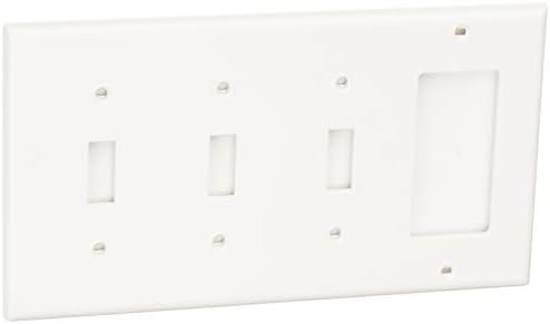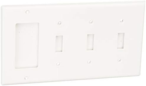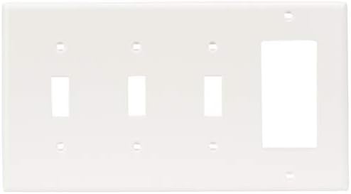 Leviton 80732-W 4-Gang 3-Toggle 1-Decora/GFCI Gadget Mixture Wallplate, Commonplace Measurement, Thermoplastic Nylon, Gadget Mount, White