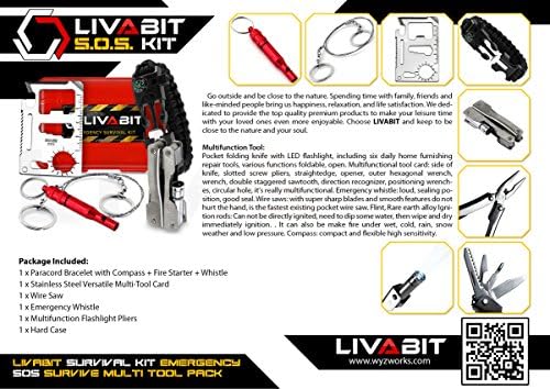 LIVABIT Survival Package Emergency SOS Survival Multi Instrument Pack + Bonus Paracord Bracelet for Tenting Mountain climbing Searching Biking Climbing Touring and Emergency