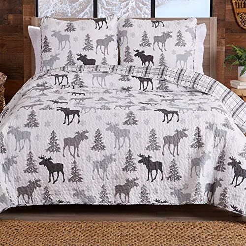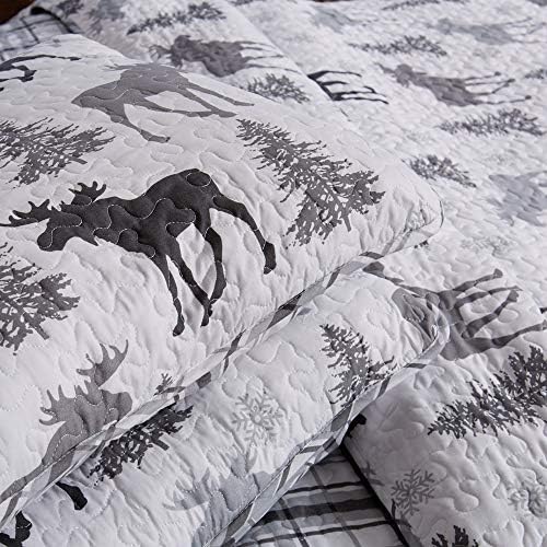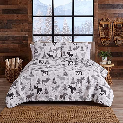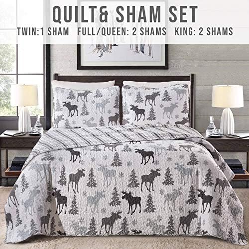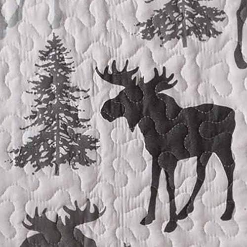 Lodge Bedspread Full/Queen Measurement Quilt with 2 Shams. Cabin 3-Piece Reversible All Season Quilt Set. Rustic Quilt Coverlet Mattress Set. Wilderness Assortment (Moose – Gray)