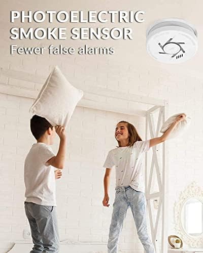 LShome 6 Pack Smoke Detector Fireplace Alarms 9V Battery Operated Photoelectric Sensor Smoke Alarms Simple to Set up with Gentle Sound Warning, Check Button,9V Battery Included Fireplace Security