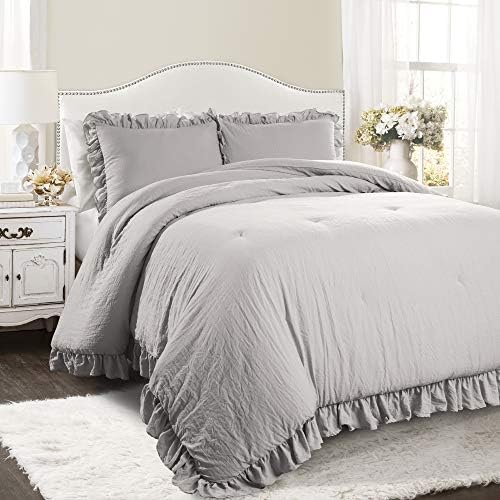 Lush Decor Mild Grey Reyna Comforter Ruffled 3 Piece Set with Pillow Sham King Measurement Bedding