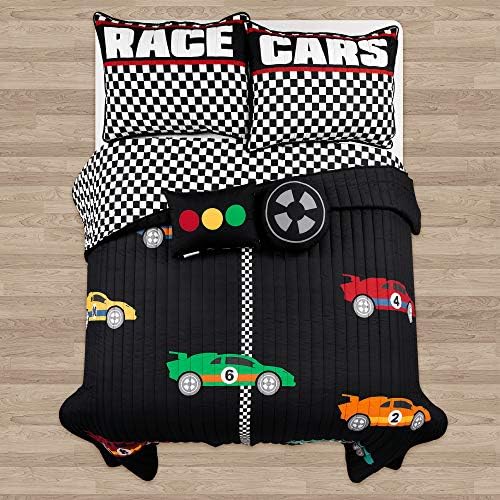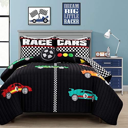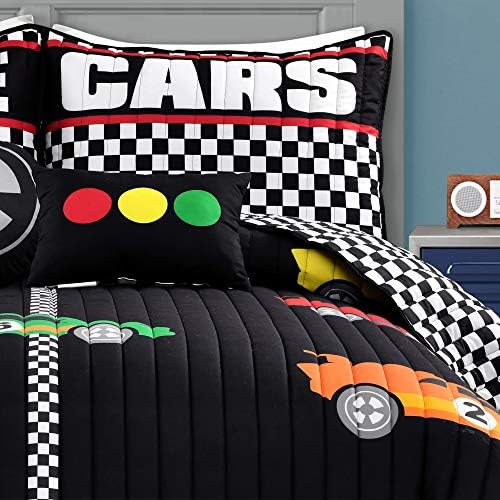 Lush Decor Racing Automobiles 5 Piece Quilt Set, Full/Queen, Black