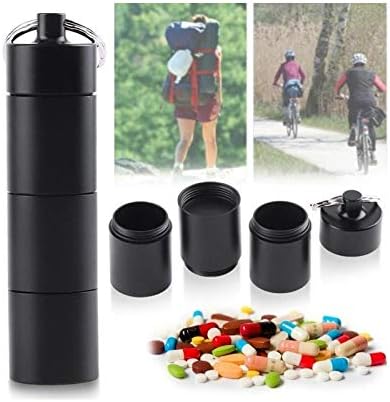 LVYOUIF Moveable Tablet Case Keychain, 3 Compartment Pure Metallic Waterproof Sealed Tablet Containers and Organizer for Purse Out of doors Journey Tenting First Assist Each day Tablet Bottle Container (Black)