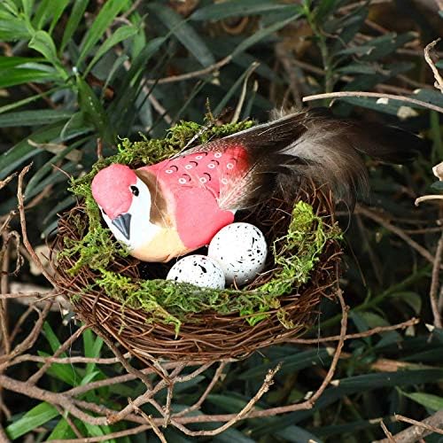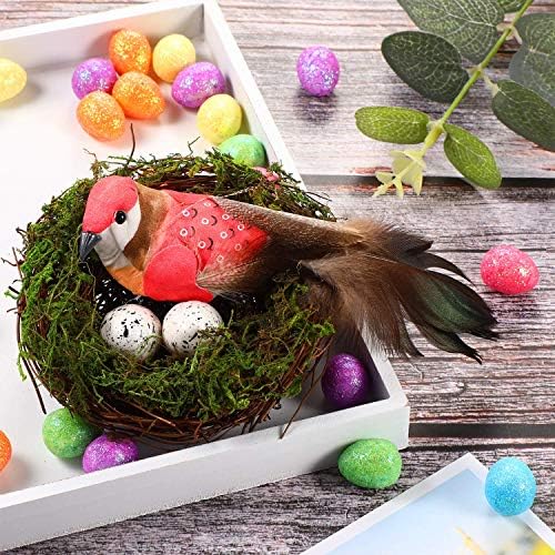 LWINGFLYER 1pcs Synthetic Simulation Foam Birds Nest Eggs Decor Feather Birds Craft DIY for House Ornaments Wedding ceremony Ornament Celebration Equipment(Mild Pink)