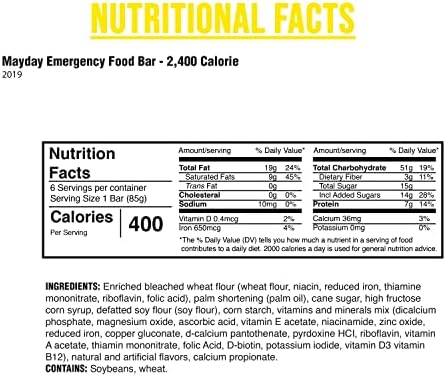 – Emergency Meals – Mayday Meals Bars (2400 cal) Lastly! Not solely a meals ration that tastes nice, however can also be very nutritious. Our 2400 calorie bars are authorized by the U.S. Coast Guard in addition to the Canadian Transport Division and have a 5 12 months shelf life. The 5 12 months shelf life begins on the date stamped on the package deal which is predicated on time of packaging, please enable for as much as a 12 months of expired time because of time of storage, transport, and positioned order. The brand new addition to our household is the 1200 calorie meals ration that’s nice for the one-day meal. All our meals rations are baked underneath strict supervision and all have that nice style of apple cinnamon. (Vitamin Information). Mayday meals rations may be saved exterior as much as 149 levels (?F) and may be eaten with out preparation.