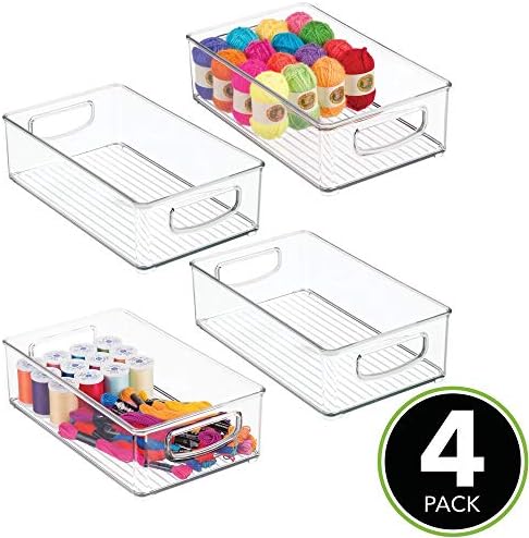 mDesign Stackable Plastic Storage Organizer Bin with Constructed-in Handles – for Craft, Stitching, Artwork, College Provides in House, Classroom, Playroom or Studio, 4 Pack – Clear