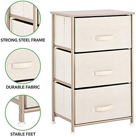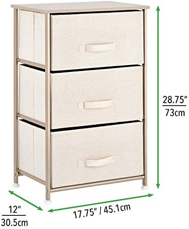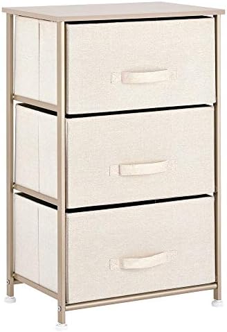 mDesign Vertical Dresser Storage Tower – Sturdy Metal Body, Wooden High, Straightforward Pull Material Bins – Organizer Unit for Bed room, Hallway, Entryway, Closets – Textured Print – 3 Drawers – Cream/Gold
