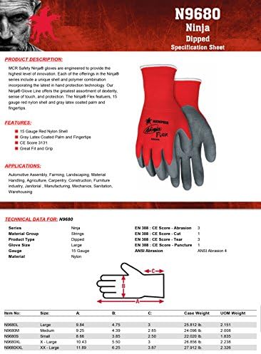 Be the first to review “Memphis Gloves MCR Security Massive Ninja Flex 15 Gauge Grey Latex Palm And Fingertips Coated Work Gloves With Pink Nylon Liner And Knit Wrist, Grey/Pink (N9680L)”