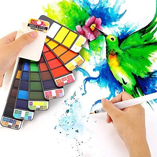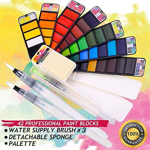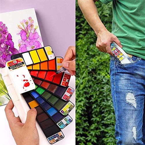 MISULOVE Watercolor Paint Set, 42 Assorted Colours Foldable Paint Set with 3 Brushes, Foldable Journey Pocket Watercolor Package, for Artist Starting Adults College students Painters Area Sketch Out of doors Portray