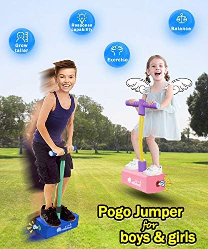 【💖 2021 UPGRADE KIDS POGO JUMPER】Our foam pogo jumper crafted from sturdy foam, it may be simply folded and stowed when not in use.Our Upgraded Pogo Stick has flashed lights,particularly when it’s night time, your kids play on the yard or playground.The froth pogo jumper is a thrilling toy which has an lovely squeaker within the base, could make a fuuny sound with every hop.