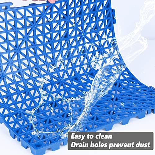 Modular Interlocking Cushion 12 Pcs 11.8″ x 11.8″ Interlocking Rubber Flooring Drain Holes Non-Slip Splicing Drainage Mats for Deck, Bathe, Kitchen, Drain Pool, Sauna Bathtub, Indoor Out of doors (Grey & Blue)