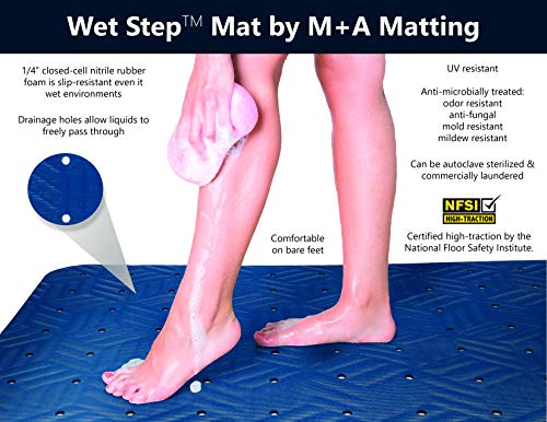 Designed and manufactured by M+A Matting, the Moist Step mat offers slip-resistance in moist areas. The Moist Step mat options drainage holes that permit water to freely drain away and an therapy designed to guard the mat from odor-causing micro organism, mould, mildew, and fungus that usually thrive in moist or humid environments. Moist Step mats are licensed high-traction by the Nationwide Flooring Security Institute (NFSI). Not like many moist space mats, Moist Step mats are constructed with sturdy closed-cell nitrile foam, offering a tender and cozy floor for naked toes. Moist Step mats present a protected, clear, and cozy floor to face in locker rooms, showers, and round swimming swimming pools and scorching tubs. Moist Step mats are immune to microbes and could be autoclave sterilized, making them supreme to be used in medical setting resembling working rooms and scrub areas.