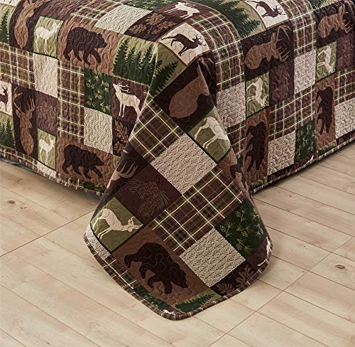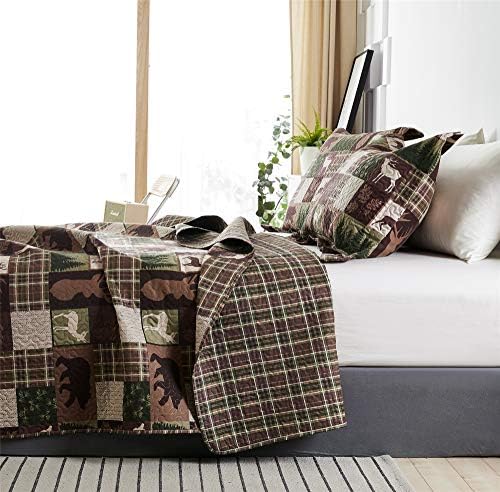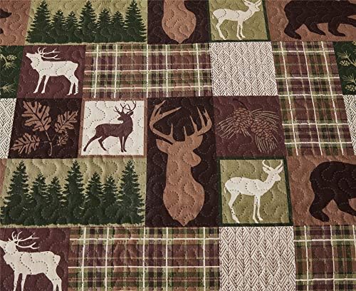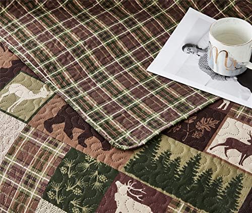 CHECKED LODGE DESIGN: This smooth and quilted quilt is an exquisite addition to lodge and nation decor because it encompasses a row of black bears, moose,leaves, pine tree forest and pine cone, surrounded by a neat, rustic plaid backdrop; Colours embody inexperienced, khaki, caramel and brown on dense