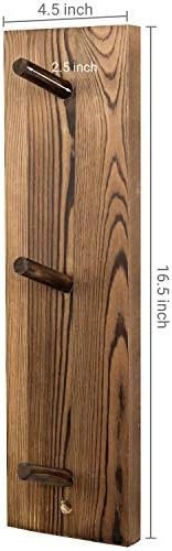 MyGift 3-Hook Wall Mounted Rustic Burnt Stable Wooden Mug Hanging Storage Rack, Set of two