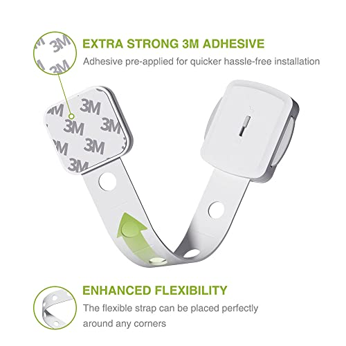 Mykahood Little one Security Strap Locks, 8 Pack Twin Motion Cupboard Locks for Infants, Adhesive for Child Proofing Cupboards, Adjustable Strap for Freezer, Rest room, Trash Pail