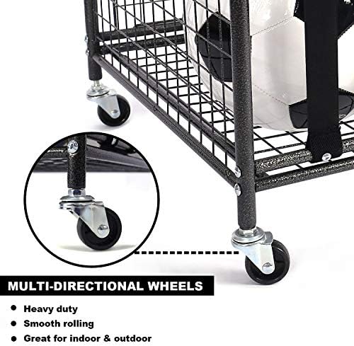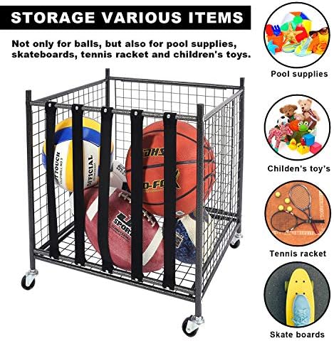 Mythinglogic Rolling Sports activities Ball Storage Cart, Sports activities Lockable Ball Storage Locker with Elastic Straps, Stackable Ball Cage for Storage Storage Organizer, Black,Metal (One Set)