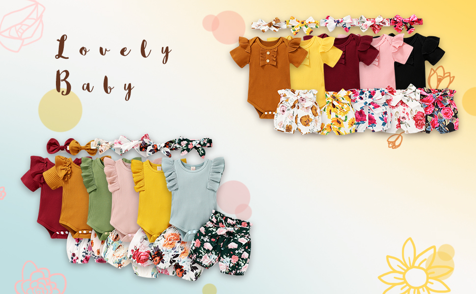 New child Lady Garments Quick Sleeve Ruffle Romper and Floral Shorts Child Lady Summer season Garments
