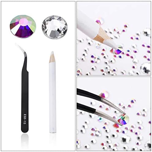 Package deal incorporates: 1 field Crystal AB rhinestones, 1 field Clear Crystal rhinestones, 1 field 12 Combine Colours rhinestones,1pcs selecting up pen, 1pcs chrome steel tweezers.