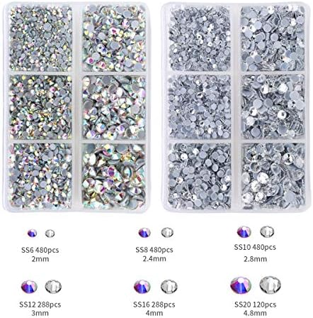 Nibiru 6000Pcs Hotfix Rhinestones Flat Again Gemstone Crystal Set with Clear and Clear AB 6 Sizes Crystal and 12 Combined Shade SS12 Rhinestones for DIY Manicure, Face Artwork Garments Luggage