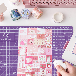 Nicecho Self Therapeutic Slicing Mat 5-Ply A4(12″x9″)for Crafts,Sturdy Double Sided Cloth Rotary Mat for Stitching,Anti-Slip Grid Craft Board for Artwork Exacto Pastime Challenge,Quilting Scrapbooking(Purple&Pink)