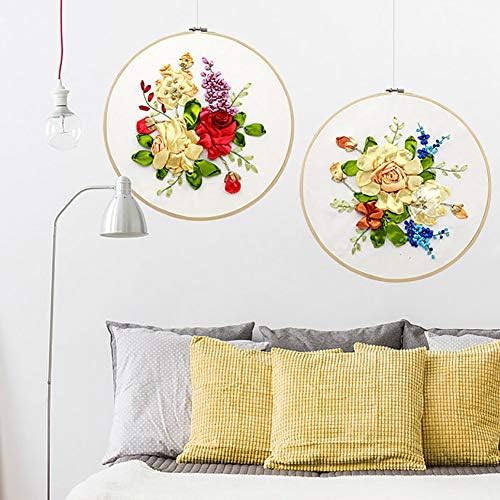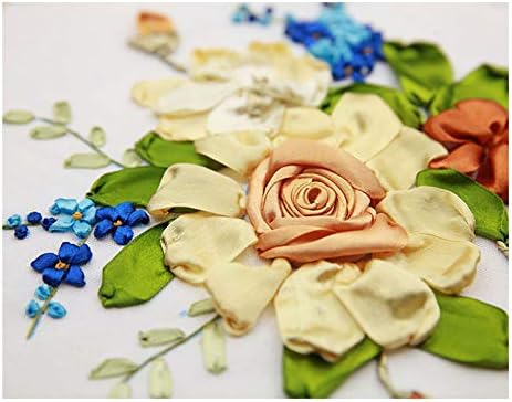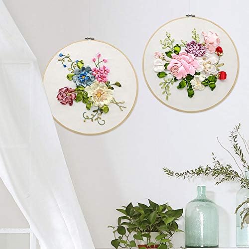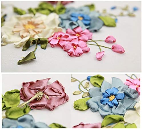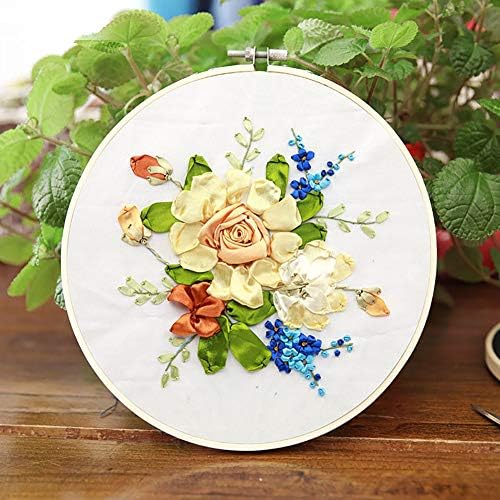 NMFIN Ribbon Embroidery Newbie Package, DIY 3D Flower Printed Sample Needlework Cross Sew Handmade Stitching Craft with Hoop for House Wall Artwork Ornament