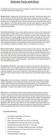 Every Defender Pack with meat comes with 200 servings complete. 126 servings of our conventional GMO-Free, Straightforward-Repair meals plus 74 servings of Natural Grains and Tremendous Meals.