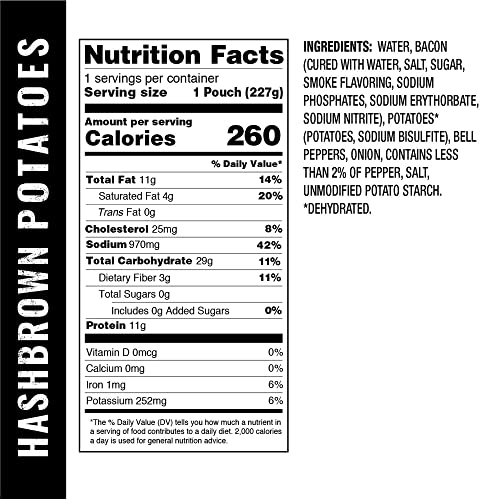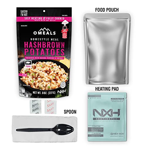 OMEALS Hashbrown Potatoes w/Bacon, Onions & Peppers Good to Go Meals | Mre Meals Army 2022 Bulk, Self Heating Emergency Meals Provides, Absolutely Cooked Backpacking Meals and Camp Meals | USA | 6 Pack