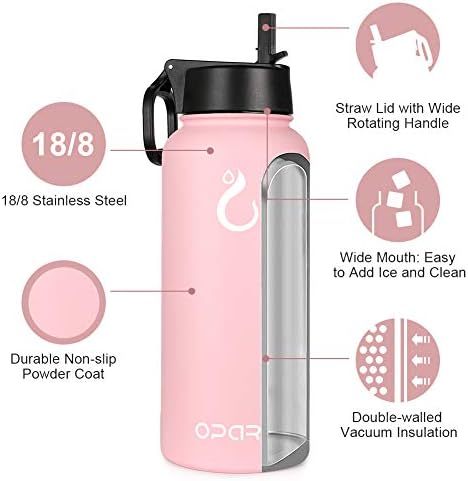 Opard Stainless Metal Water Bottle, 32 oz Vacuum Insulated Double Walled Leak Proof Sports activities Water Bottle with Straw for Fitness center Journey Tenting
