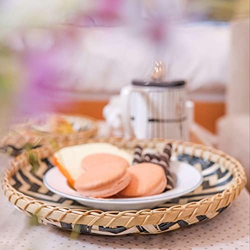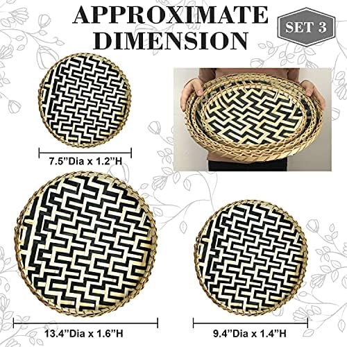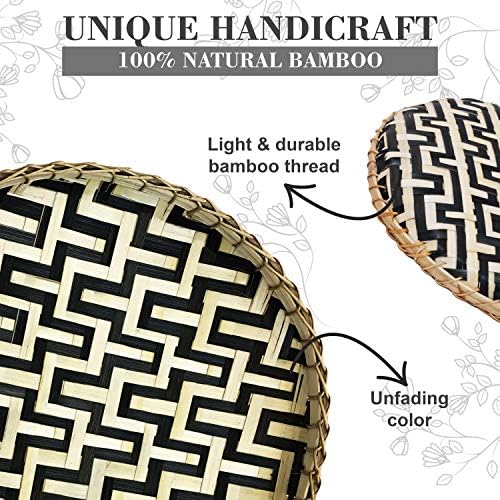 Ornamental Wall Baskets Shallow Bamboo Tray Woven Artwork Decor Set Pure Handmade Fruit Basket Versatile Use for Dwelling Decor, Breakfast Drinks Snack Espresso Desk Hanging Serving Wicker (Black Pure)