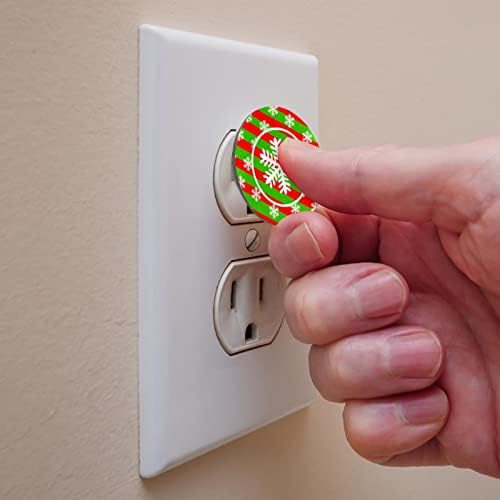 Outlet Plug Covers (12 Pack), Electrical Protector Security Caps Stop Shock Hazard Christmas Snowflake Pink Inexperienced Stripes