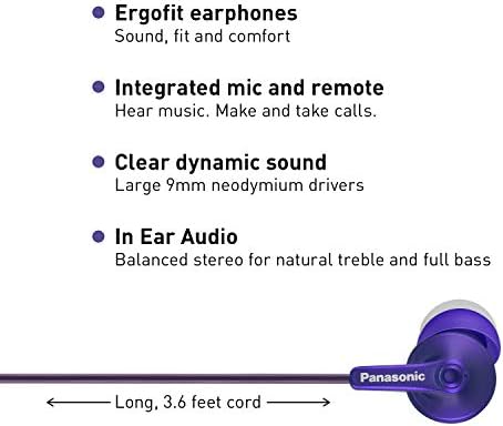 Panasonic ErgoFit Earbud Headphones with Microphone and Name Controller Suitable with iPhone, Android and Blackberry – RP-TCM125-VA – In-Ear (Metallic Violet)