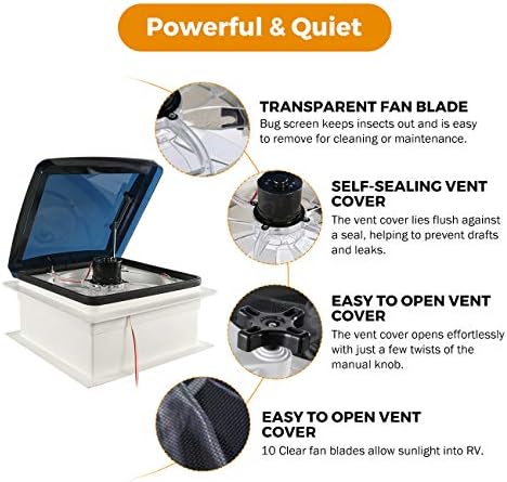 PARTOL 14” Roof Vent Fan handed US UL and ETL certification. Boasting a physique made out of ABS plastic, PARTOL Roof Window Vent Fan is mild in comparison with conventional vent followers for RV, Camper, Trailer, Motorhome, but it surely nonetheless handles out of doors parts nicely.Since PARTOL Vent fan can be UV-resistant, fading must be lower than a difficulty within the regular case than others,that could be a large plus for summer time travels.Furthermore, due to the inclusion of a strong built-in cowl, the vent fan made by PARTOL goes to function easily for a few years.Because it employs a mix of a ten-blade fan and a robust motor, the vent fan from PARTOL retains air within the inside shifting always.The fan is reversible to take air in or out. Additionally we will select pace by swap.Generally when cooking or smoking,I’ve it blow air out of the van.Generally when reversing the fan,we are going to really feel the recent air.Should you prefer to preserve the noise down in your rig, the PARTOL vent fan is the perfect RV vent fan you will get.