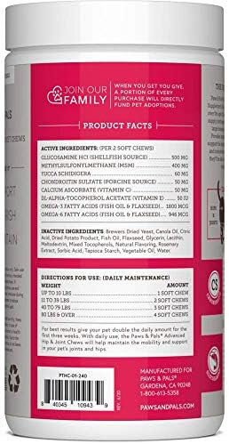 Paws & Friends Max Energy Glucosamine for Canine Hip and Joint Complement – with Chondroitin Plus MSM – for All Canine Sizes – 240 Depend Smooth Chews – Well being Help Arthritis Ache Reduction