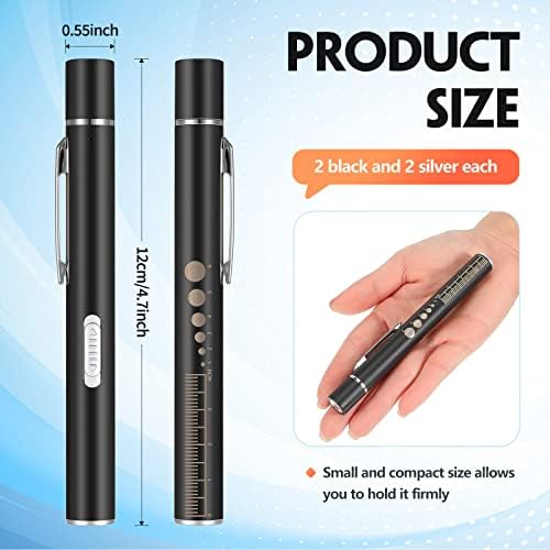 Pen Gentle 4 Packs LED Penlight Reusable USB Pen Gentle Flashlight Waterproof Pen with Gentle, Pocket Clip and Heat Gentle Bulb for Repairing, Tenting, Silver and Black