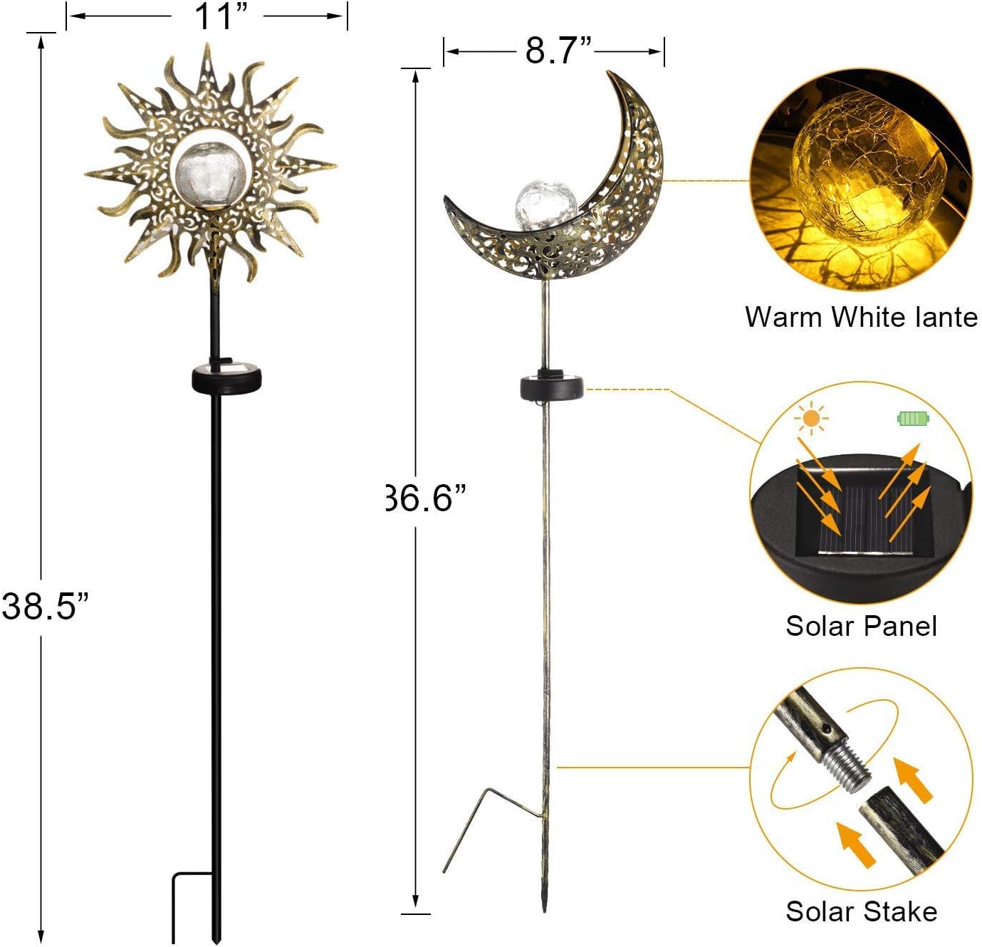 Photo voltaic Lights Out of doors Ornamental Backyard Decor,Waterproof Steel Solar Moon Stakes Crackle Globes Ornament for Walkway,Yard,Garden,Patio(2 Pack)